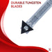 Lame en carbure de tungstène qui reste tranchante et productive jusqu'à 100 fois plus longtemps que les lames conventionnelles.